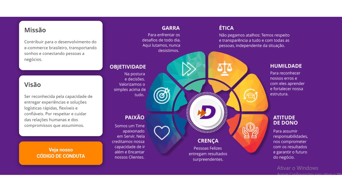 Somos especialistas em soluções logísticas e movidos por um propósito claro: conectar pessoas e negócios de forma eficiente, ágil e humana. Valorizamos quem veste a camisa, faz acontecer e quer crescer junto com a gente.